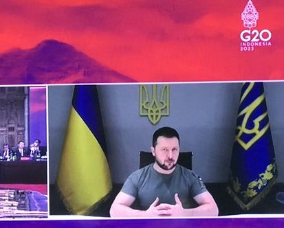 Con su habitual camiseta verde y en ucraniano, Zelensky se dirigió a los líderes reunidos en la cumbre de Bali, entre ellos el presidente chino Xi Jinping y el estadounidense Joe Biden.