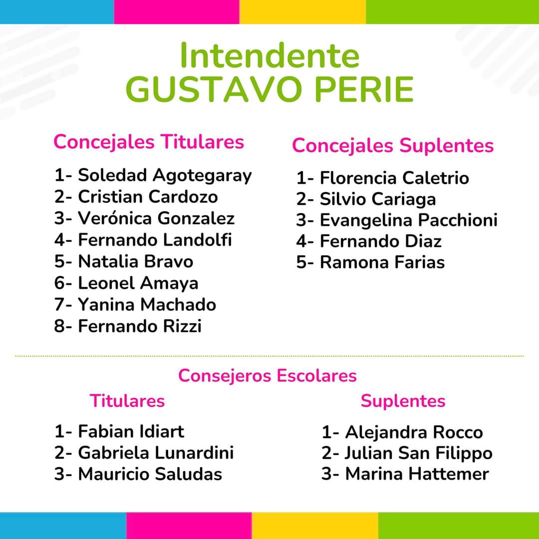 A nivel local, la lista presentada por el intendente lleva representantes de distintos colores políticos: “Los tres primeros lugares de la lista son radicales. El cuarto es peronista y el resto, del PRO. Cuando uno arma la lista lo hace con gente que trabaje más allá de los colores políticos. Así fue siempre. La gente elige a las personas, a los grupos de trabajo”, señaló Perié.