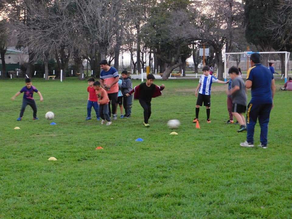 Primera escuela de fútbol en el club El Ombú.