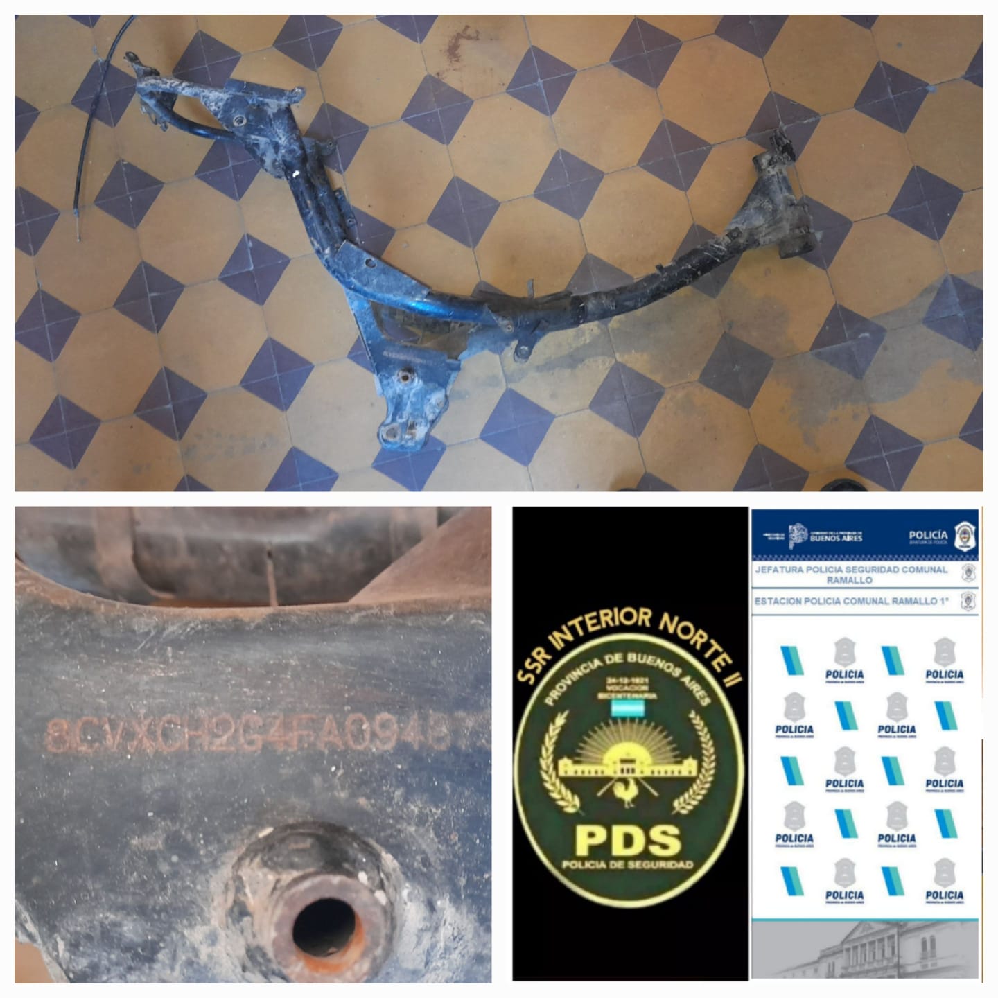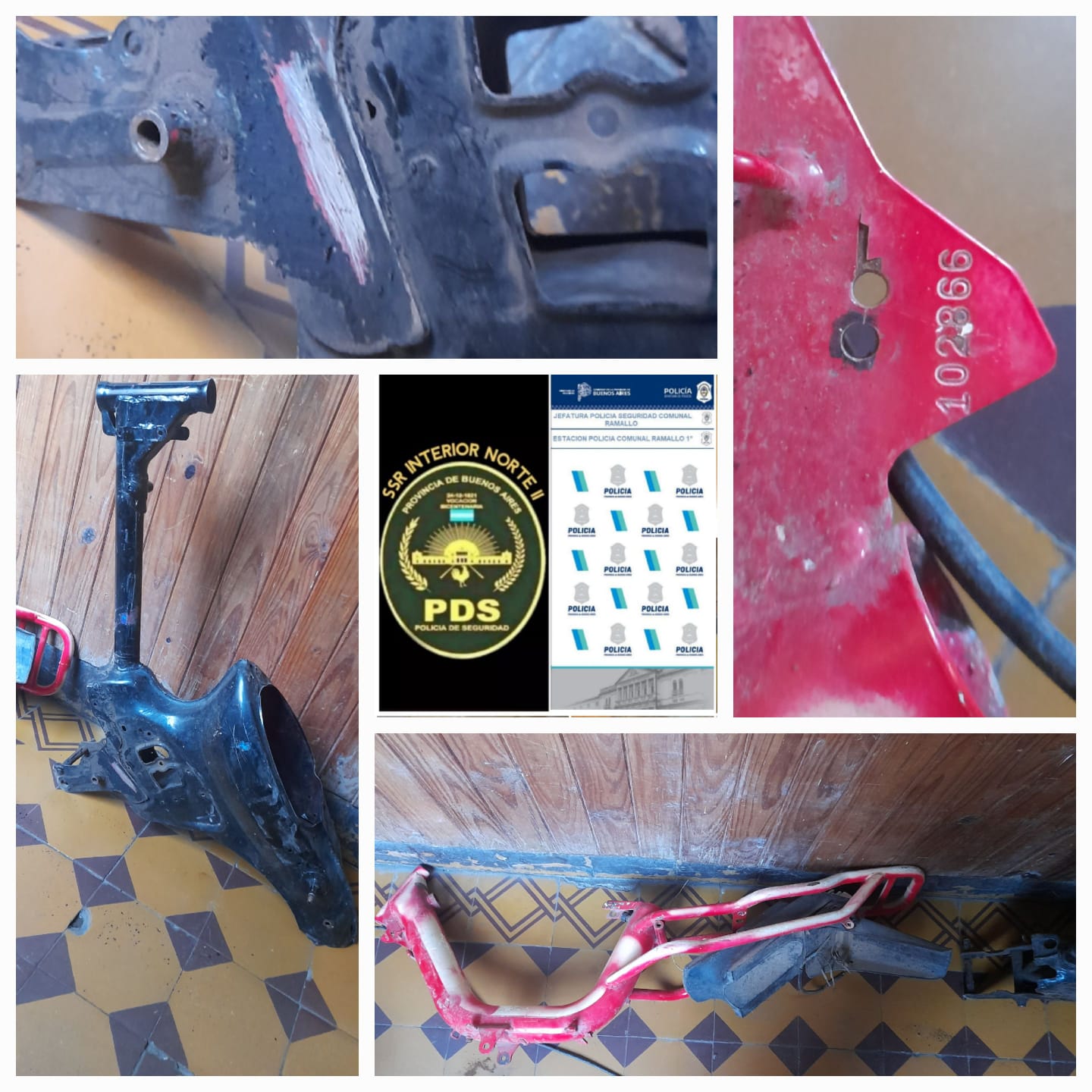 También en operativos de prevención realizados en diferentes días, personal policial encontró tres cuadros de motos tirados en la vía pública, en tres puntos distintos de Ramallo: Teresa de Calcuta y Velázquez, Teresa de Calcuta y Córdoba, Verdi y España.