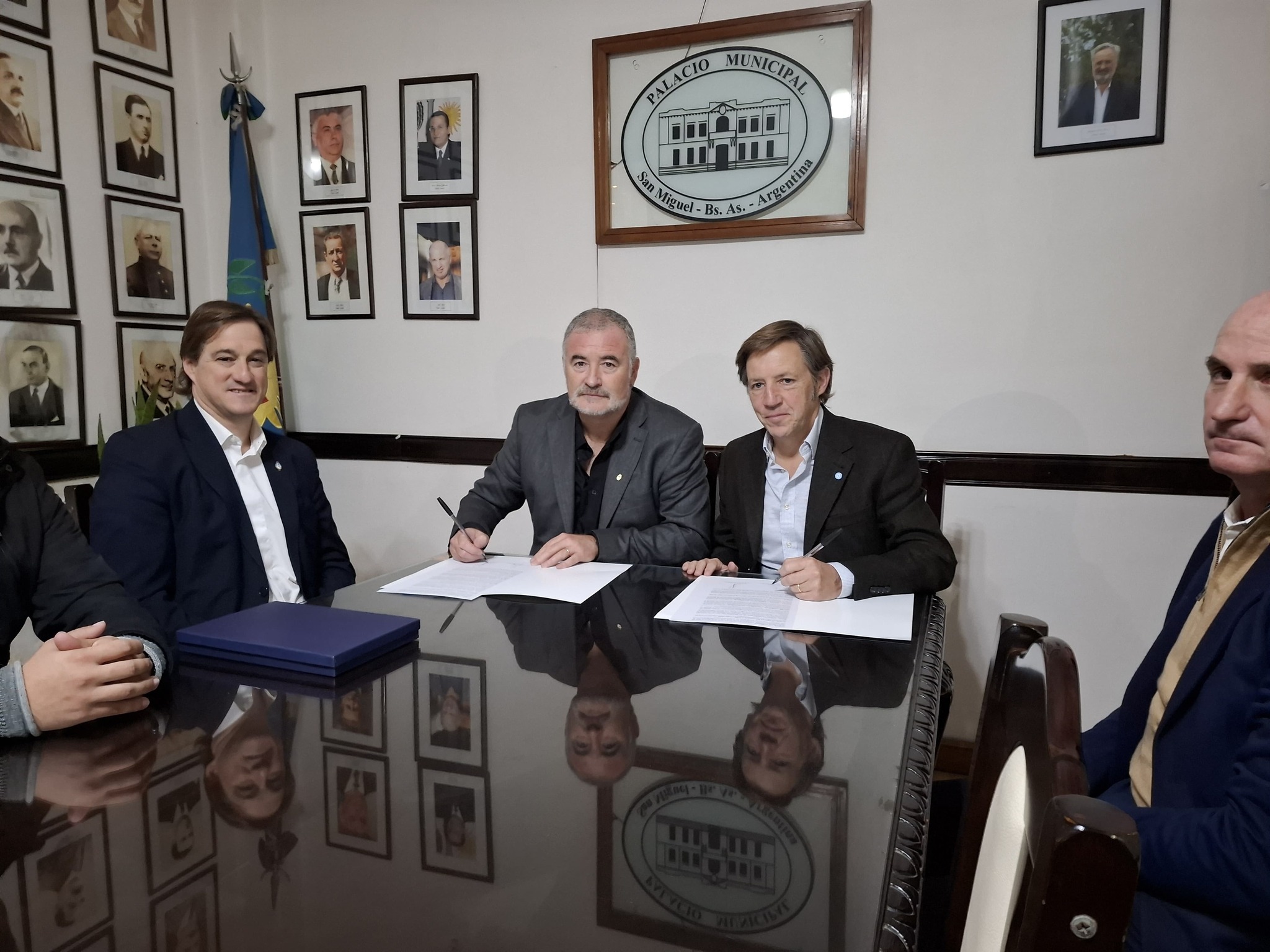 El intendente Mauro Poletti, firmó hoy un convenio con el jefe comunal de San Miguel Jaime Méndez, para implementar Ojos en Alerta en Ramallo.