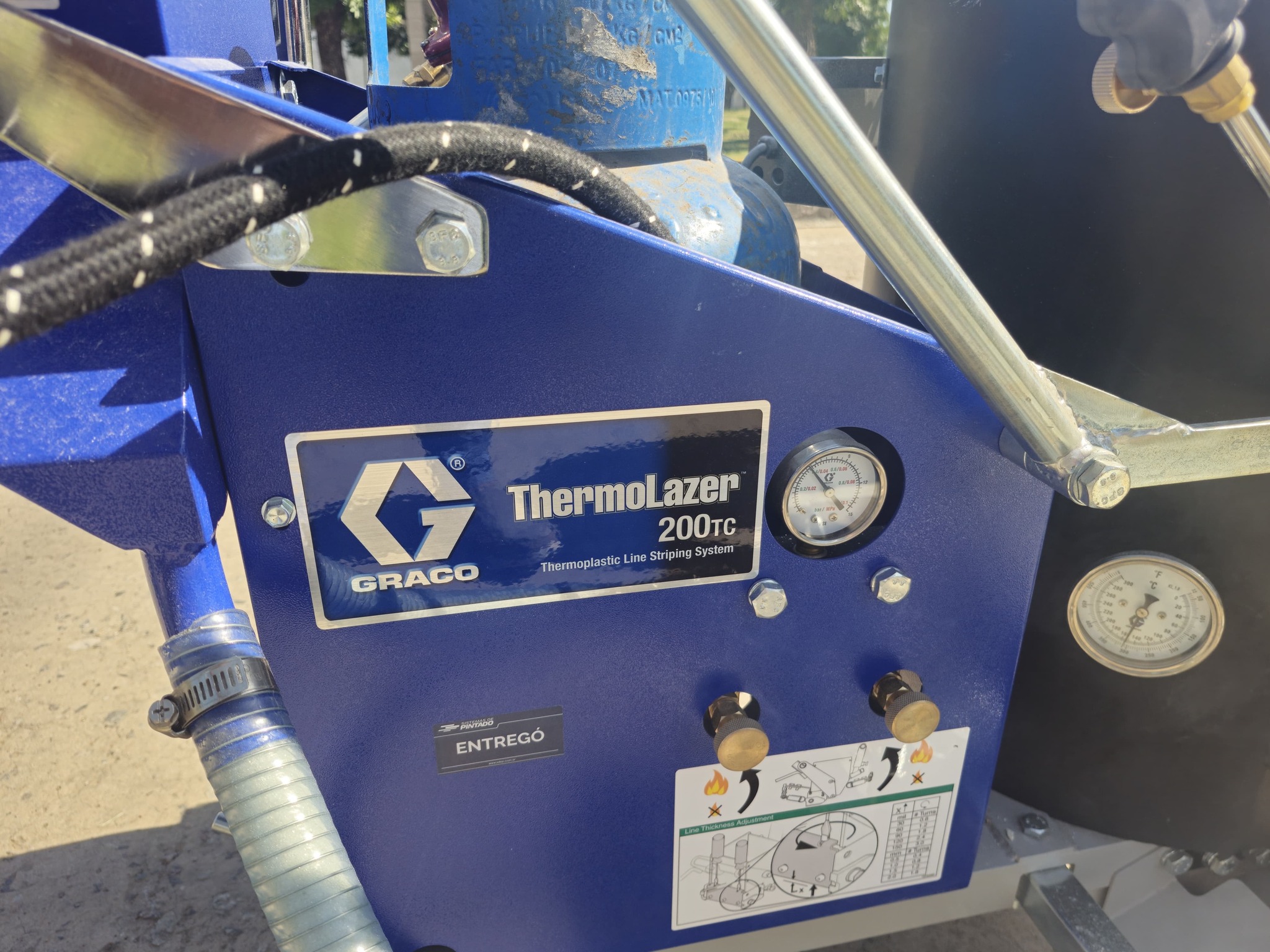 También posee bandejas de pintados intercambiables, con mecheros para mantener la temperatura y con la medida reglamentaria para el pintado de las sendas peatonales